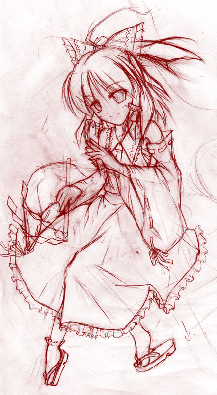 やっぱり更新が滞るー!! てことで、描きかけですがイラストアップ! 一応、霊夢です。バランスが悪いのは、向かって右にもう一人いるからー。 年賀状も家族のものは作ったのに、自分用はまだなので、今日も帰ったら お絵かきです。デザインだけは頭の中にあるのですが。 毎年、描こうとして間に合わずで、(スキル不足も…)年賀状出さなくなりつつあったので、 今年こそは頑張りたいです。 って、仕事もたまっているので、かなりピンチなのですが。 あと、仕事場ではスゴイ勢いで風邪が流行ってます。 皆さんもお気をつけて!!